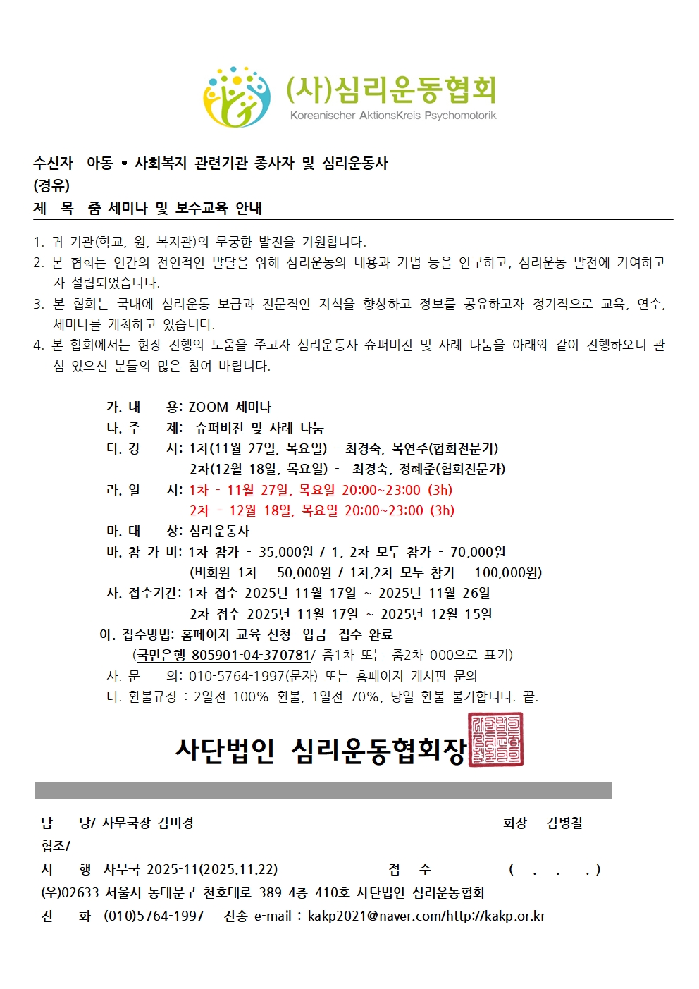 사) 심리운동협회 송년의 밤에 초대합니다(보수교육 2시간 인정)