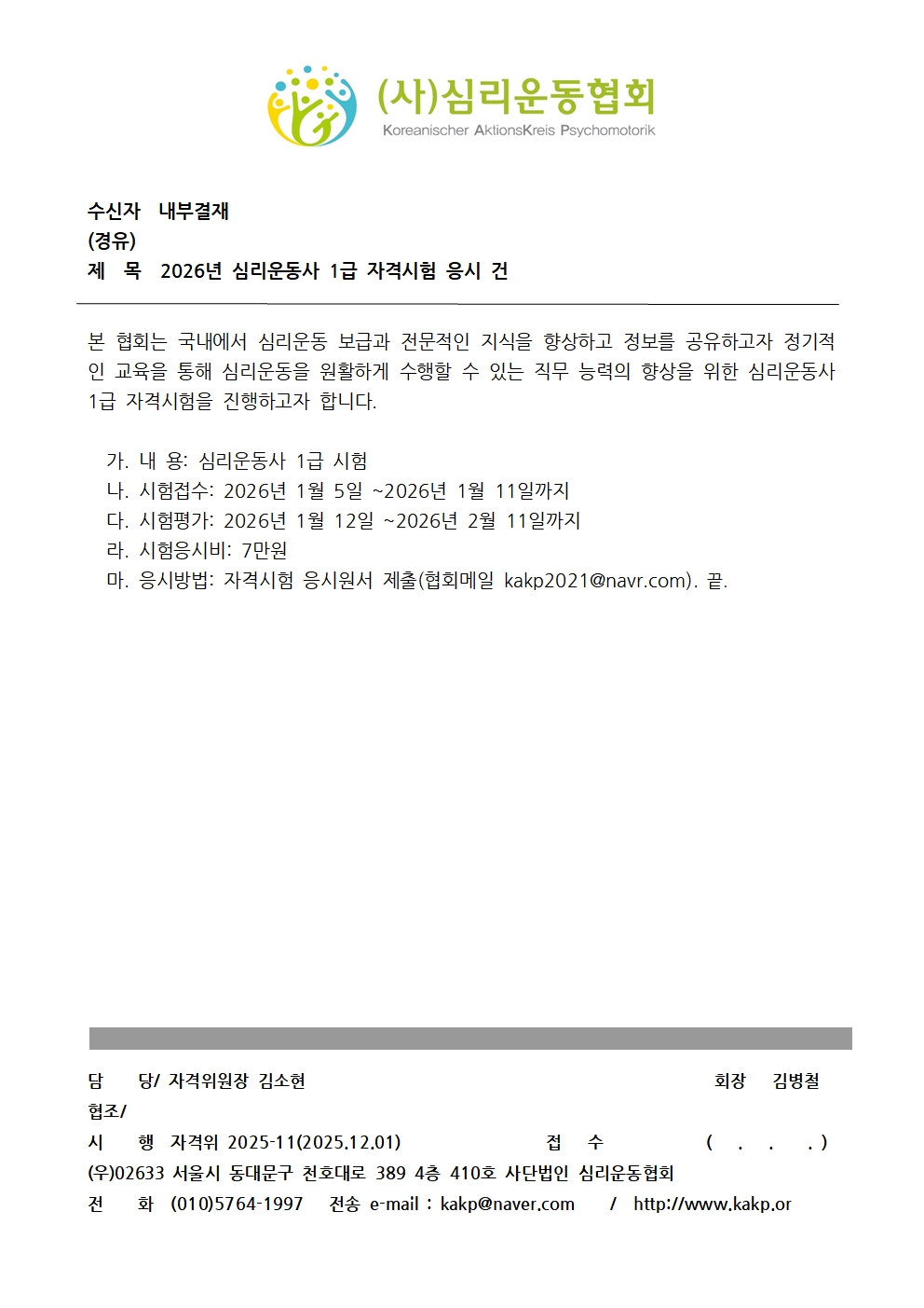 심리운동사 2급 자격시험 합격자 공지