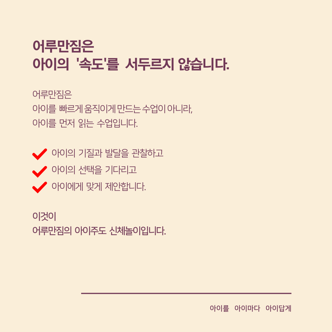빠른 성과보다 과정과 관계, 그리고 아이의 주도성을 중요하게 생각합니다.