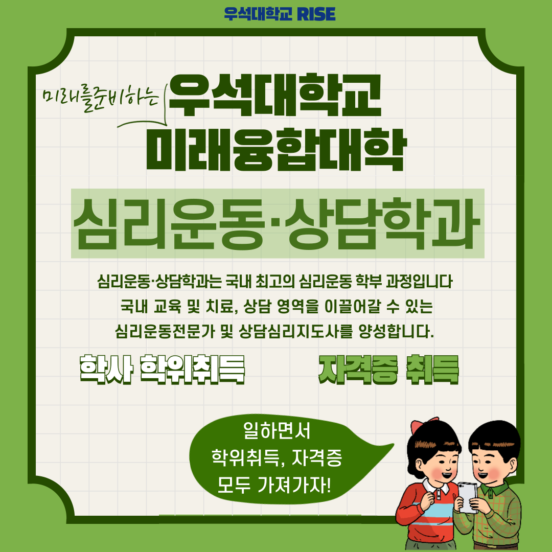 우석대학교 심리운동상담학과에서 신입생을 모집합니다.